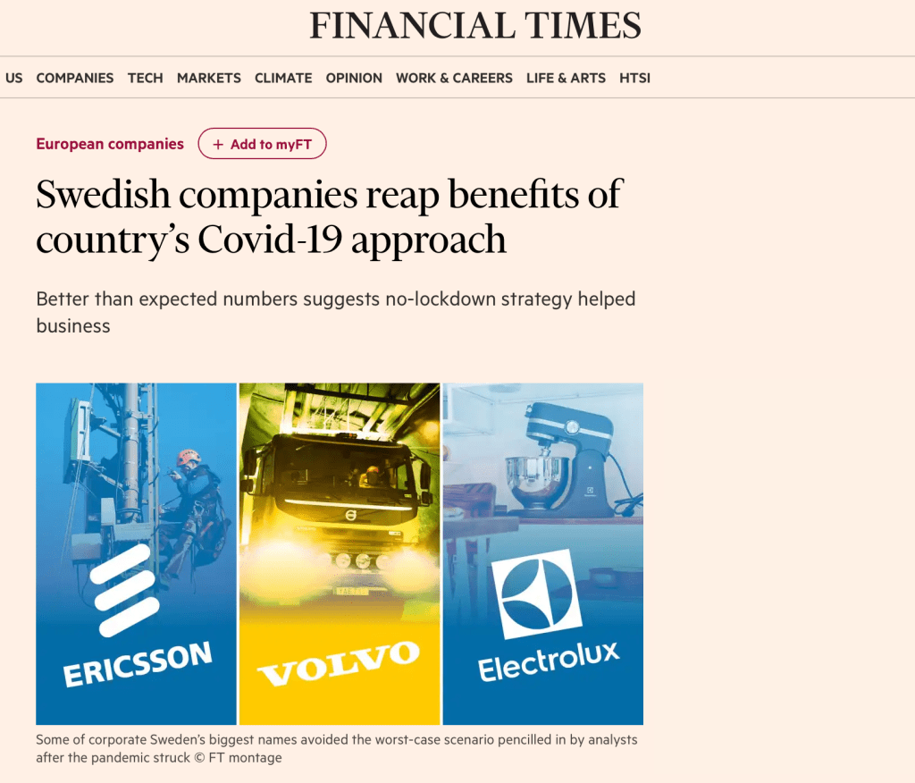 Ci hanno provato in tutti i modi: prima, ci hanno detto che il governo svedese aveva “fatto retromarcia” sul no al lockdown (non era vero), poi ci hanno assicurato che c’erano comunque molti malati (senza dire che la percentuale era decisamente inferiore rispetto ai paesi come l’Italia), infine hanno fatto di tutto per convincerci che l’economia svedese avesse subito gli stessi contraccolpi rispetto ai paesi che invece il lockdown lo avevano fatto.