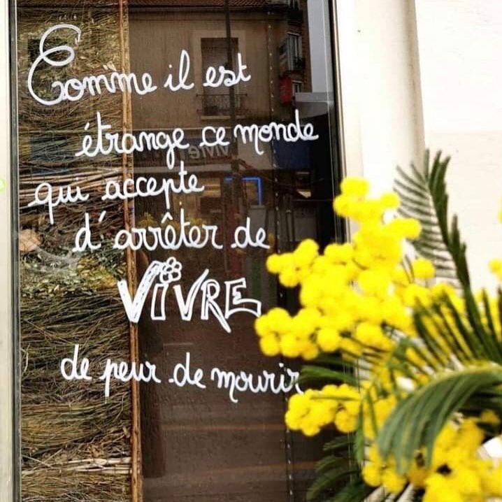 Smettere di vivere per paura di morire madforfree politica gennaio 24, 2021gennaio 23, 2022 1 Minute Vetrina di un fioraio a Parigi, gennaio 2021 Condividi: Condividi su X (Si apre in una nuova finestra) X Condividi su Facebook (Si apre in una nuova finestra) Facebook Mi piace Caricamento... Correlati Pubblicato da madforfree Vedi tutti gli articoli di madforfree Pubblicato gennaio 24, 2021gennaio 23, 2022