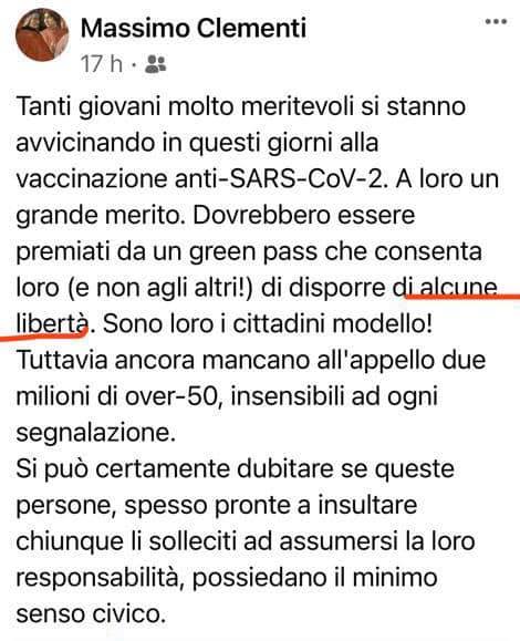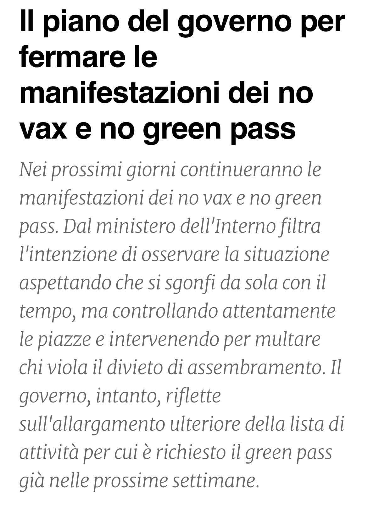 Il 6 agosto 2021 per me è e resterà un giorno simbolo: il giorno in cui il green pass diventa obbligatorio sul territorio nazionale. Davvero la gente, le persone normali, i miei amici, credono che il Green Pass – ottenibile attraverso vaccino, tampone o guarigione da Covid-19 – è stato istituito per “renderci più liberi” e per “limitare la circolazione del virus”? ![]()