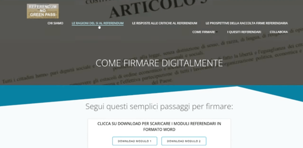Dato che è giornata di votazioni, qui si spiega come votare online per il referendum contro il green pass. Perché c’è bisogno di un tutorial per firmare online? Perché l’unica modalità che lo Stato ammette per considerare valide le firme è la più farraginosa. Potevamo fare una bella piattaforma user-friendly ma si correva il rischio che le firme venissero invalidate. Coraggio, 5-10 minuti ed è fatta