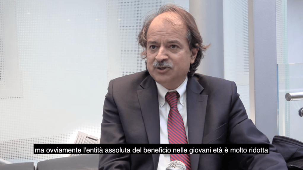 Risposta: Based on what we know, vaccines seem to have a favourable benefit to risk ratio even in younger ages, but of course the absolute magnitude of the benefit in young ages is very tiny, because the risk of dying from the disease or even having serious consequences is very very low. Conversely, in vulnerable people and in elderly people we have a lot to gain in term of number of fatalities averted, number of hospitalizations, number od TI admissions. In this regard, probably if we had managed to improve the uptake of vaccination in the segment of population that has a higher risk, we would have achieved even more deaths being averted compared to a strategy where we just try to vaccinate everyone. I’m not gonna tell people not to vaccinate themselves, of course, but the incremental benefit from trying to push for vaccination especially in low risk groups is last, especially when we go into measures that are very aggressive, that use mandates, that create a lot of animosity, that make many people uneasy and many of them start losing their faith in public health, they feel oppressed, or feel their freedom is suppressed, in one way or in another, some of them even lose their jobs, or they find themselves in very peculiar circumstances. So I think that this approach, in a way, is shooting itself in the foot because it achieves a little bit more percentage of people agreeing to be vaccinated but grudgingly not really believing in it and it arrods their trust in public health, which is something that we need to maintain in the longterm.